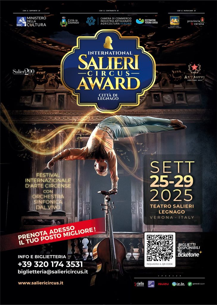 Dal 25 al 29 settembre 2025, il Teatro Salieri di Legnago (VR) ospita una nuova edizione del Salieri Circus Award, il Festival Internazionale d’Arte Circense con Orchestra Sinfonica dal vivo.